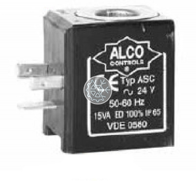 Электромагнитная катушка ASC для соленоидных вентилей Alco. Напряжение питания 24 В переменного тока 50 Гц. Потребляемая мощность 17 Вт. Поставляются с монтажной клипсой.