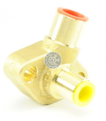 Корпус (фланец) ТРВ ALCO, модель C 501-7 угловой корпус, является составным элементом разборных терморегулирующих вентилей ALCO, серий T, L, 935 и ZZ. Материал корпуса-латунь, соединительные патрубки под пайку ODF 1/2" X 5/8".