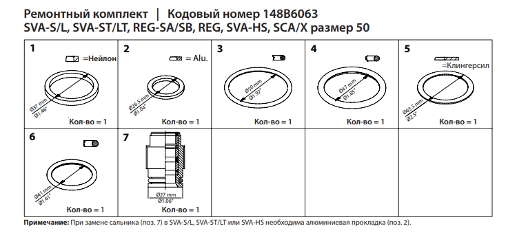Ремонтный комплект сальник и уплотнение используется совместно с SVA-S/L, ST/LT, HS - REG/SA, SB - SCA/X.
