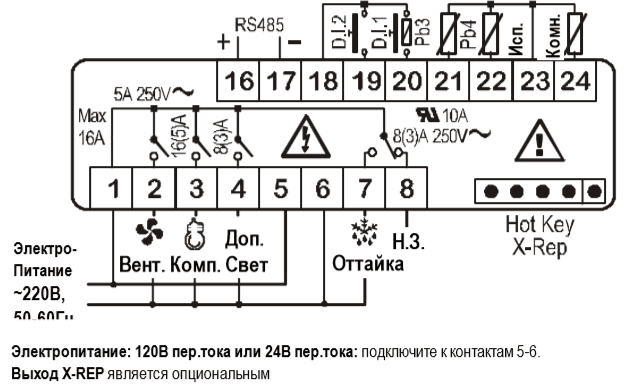 Контроллер Dixell XR75CX -5N7C0 NTC R=8A+BU+REP 230V
