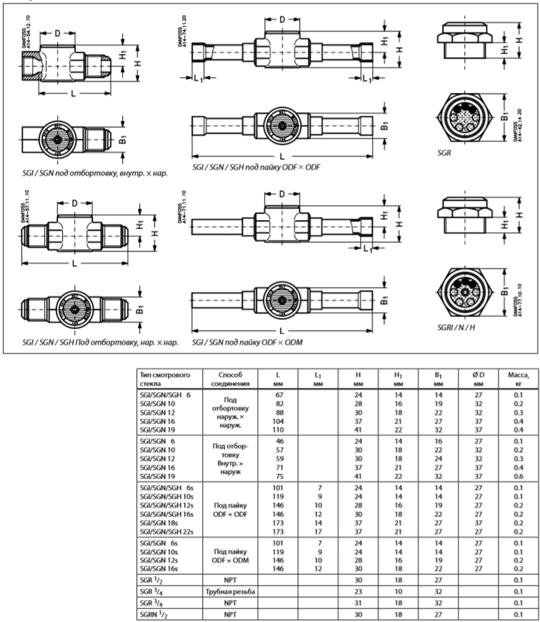 Смотровые стекла SGN Danfoss указывают на слишком высокое содержание воды в системе охлаждения, на недостаточное переохлаждение и недостаточную заправку хладагента. Смотровые стекла SGN снабжены индикаторами влажности, которые изменяют свой цвет, показывая степень содержания влаги в хладагенте. Смотровые стекла SGN используются с негорючими ГФУ хла